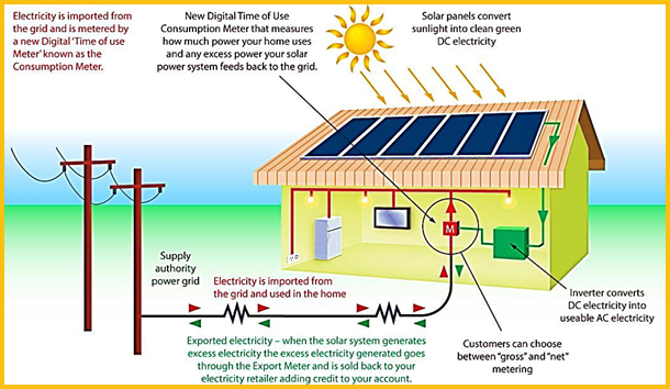Grid-tied, on-grid, utility-interactive, and grid back feeding are all terms used to describe the same concept, a solar system that is connected to the utility power grid. These systems are connected to the utility grid and do not require battery storage. Excess solar power that you generate from an on-grid is exported onto the utility grid and you get paid a feed-in-tariff for the energy that you export. Grid-tied solar systems unable to function or generate electricity during a blackout or power outage due to safety reasons.